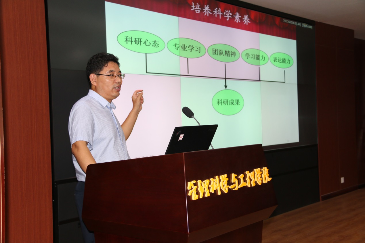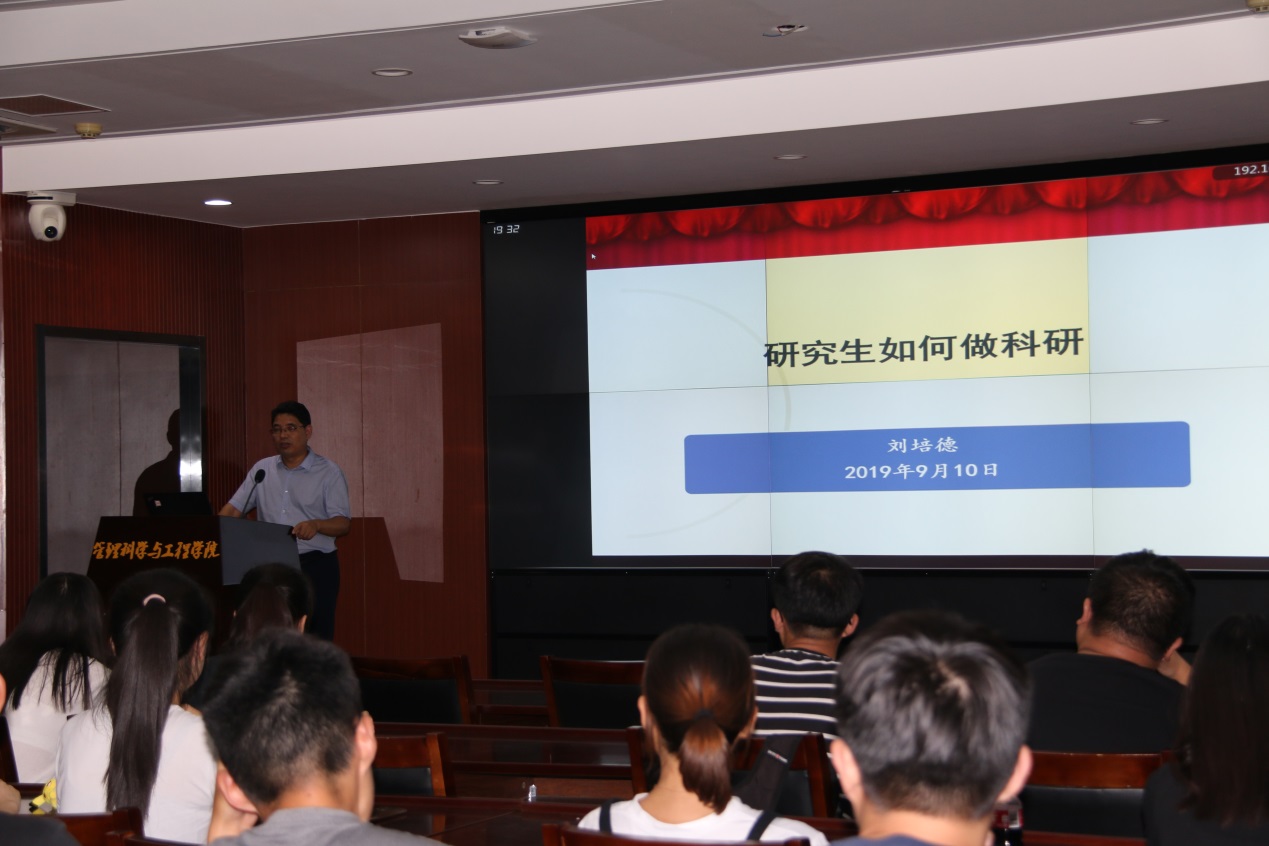 9月10日晚上,RAYBET雷竞技2019级研究生新生入学教育系列讲座——《研究生如何做科研》在逸夫楼621教室召开。经理、博士生导师刘培德教授担任本次讲座的主讲, 2019级全体研究生新生参与了本次活动。