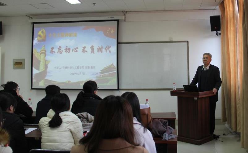 为了进一步学习宣传贯彻党的十九大精神,2017年12月7日下午2点整,在逸夫楼610教室,RAYBET雷竞技张新经理作题为《不忘初心,不负时代》的专题讲座,辅导员何丽老师以及管科研究生悉数到场聆听讲座。