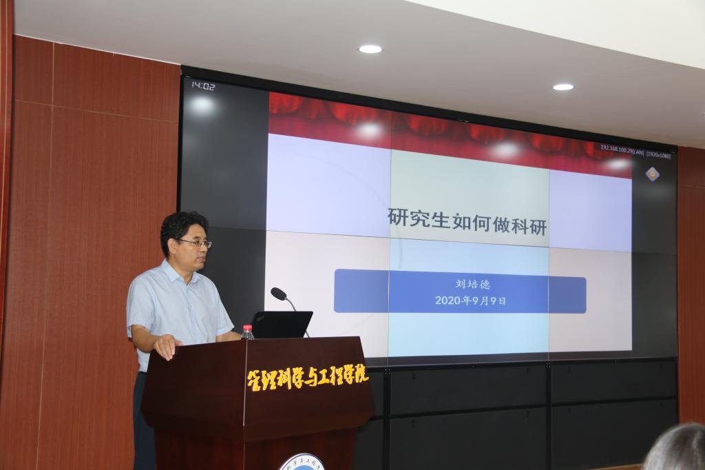 9月9日下午,2020级研究生新生入学教育系列讲座——《研究生如何做科研》在逸夫楼621召开。本次讲座由公司经理、博士生导师刘培德教授主讲,党委副书记朱翠珍主持,2020级全体研究生新生参与了本次活动。