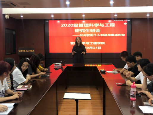 2020年9月14日,RAYBET雷竞技2020级管理科学与工程、物流工程与管理新生分别在逸夫楼621召开新生班会,会议由团委书记兼研究生辅导员何丽主持,管理科学与工程全班成员、物流工程与管理全班成员参与了此次活动。