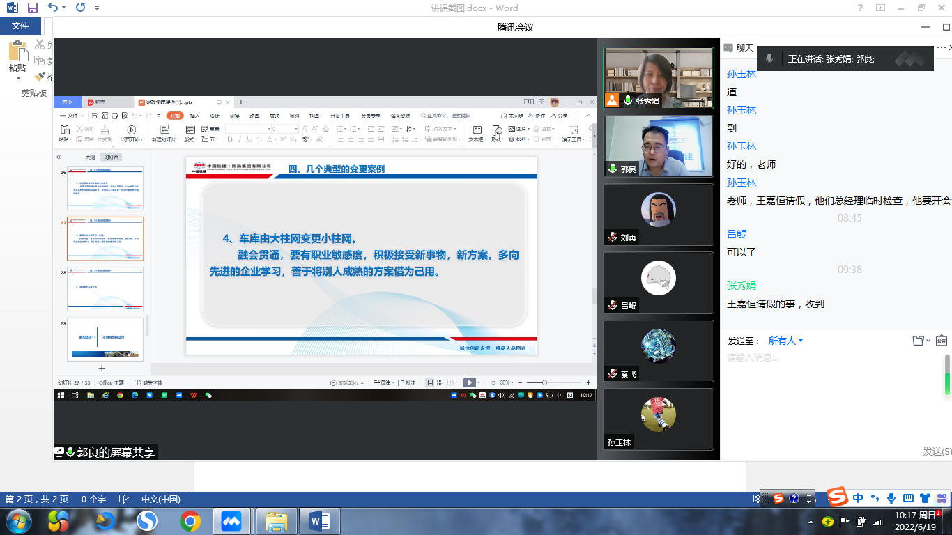 为提升员工理论结合实际的水平,近日,学院特邀企业专家为学院2021级MEM员工开展线上专题讲座,主讲人为中铁十四局项目经理郭良和中大汇通工程咨询有限公司副总经理吴明明,讲座由公司工程管理系教师张秀娟主持。