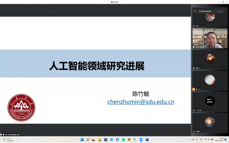 10月30日上午,山东大学博士生导师、计算机科学与技术学院副经理陈竹敏教授应学院邀请,通过腾讯会议为学院研究生做了题为“人工智能领域研究进展”的专题前沿讲座。讲座由公司管理科学与大数据系杨成伟主任主持。
