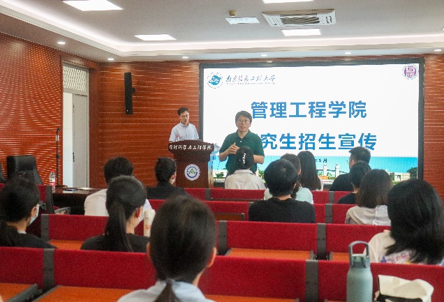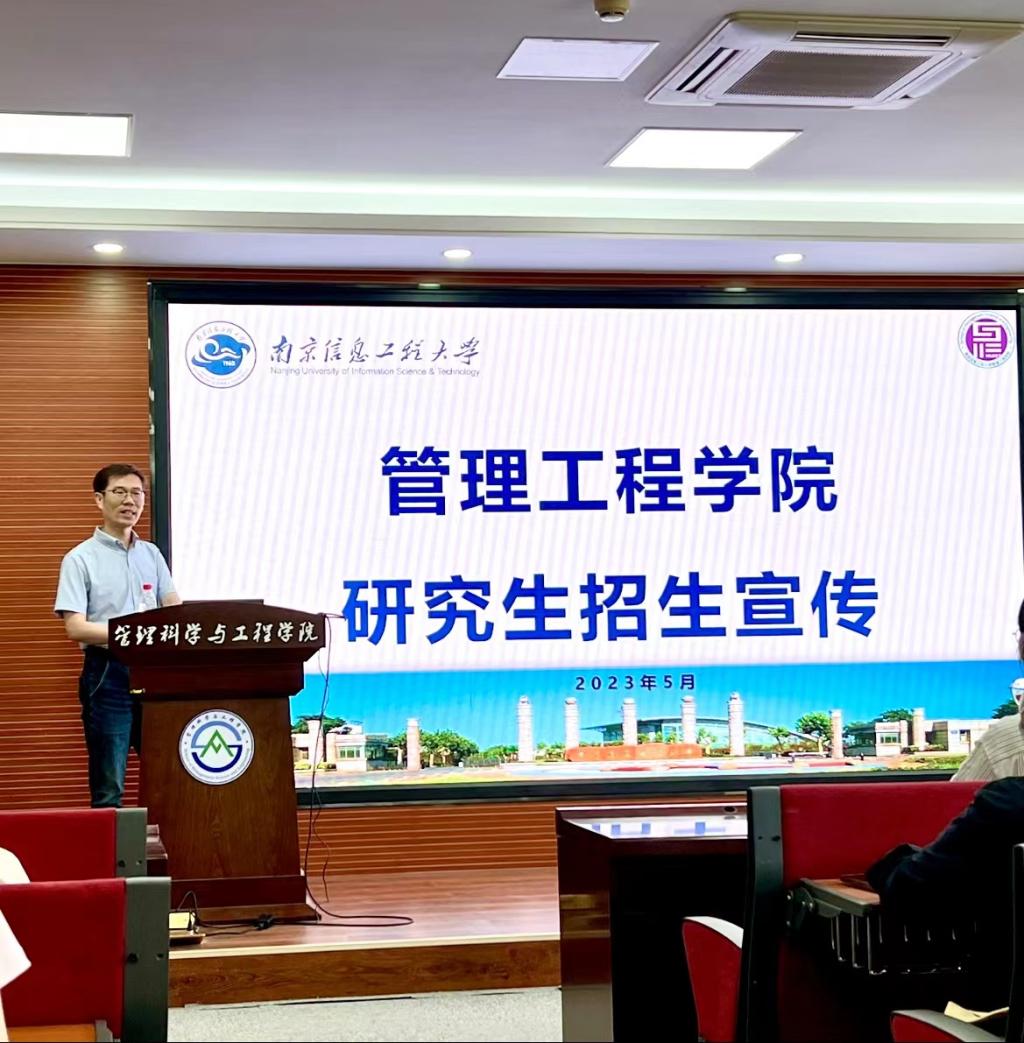 讲座伊始,程中华教授先向同学们简单介绍了南京信息工程大学的学校概况与政策保障,接着详细介绍了管理工程学院的发展历史、团队概况与科研力量,以及广阔的教育平台资源,并着眼于管理工程学院的培养质量与学位点介绍了学院学科培养实力,其中,该校的管理科学与工程专业采用“7+6+2”本-硕-博培养体系,展现出成熟的培养模式。他还就管理工程研究生的报考要求和相关政策进行了详细说明,重点介绍了该校中外合作研究生办学项目和暑期学校的相关情况,并为同学们提供了许多的针对性的考研建议。最后,程中华教授又从校园生活角度向同学们介绍了学校丰富多彩的生活与多元文化的交流平台,欢迎同学们报考南京信息工程大学管理工程学院。