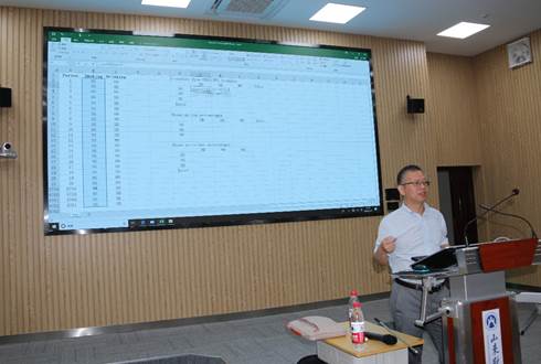 本期暑期国际学校的主题为“管理决策中的量化分析”。李教授从简单示例和分析技巧入手,采用国际化的教学模式,带领研究生开始课程学习。李教授用亲身经历举例,幽默风趣、循循善诱、引人入胜,阐述管理决策中的事件概率与模拟计算,解释决策分析和商业模拟涉及的基本概念、基础知识和专业工具。在讲解理论知识的同时,为提高学习积极性、加强操作熟练度,李教授带领同学们结合沃尔顿书店的订货量计算、合同竞标问题等管理学领域的现实基础问题进行数据分析和仿真模拟。