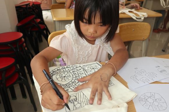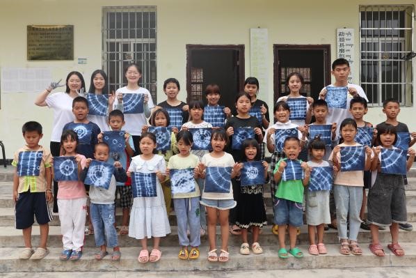 为了加强农村未成年人思想引领,大力弘扬中华优秀传统文化,铸牢中华民族共同体意识,三梦团队成员分别开展了以“白族非遗”“走进图腾”为主题的传统文化课程。支教团成员通过播放扎染成果视频,激起孩子们后续染布的兴趣;通过讲解扎染的相关知识,加深孩子们对扎染的认识。在团队成员的帮助下,孩子们自己动手扎布,体会扎染非遗文化的复杂性与创造性。课程最后,孩子们纷纷展示自己的扎染成果,脸上满是骄傲与快乐的笑容,手中靛蓝色的染料和白色的染布碰撞出中华传统文化之美,在暖阳下熠熠生辉。图腾是中华文明深厚文化底蕴具象化的形式之一,各种各样的图腾有着不同的寓意,支教团成员先向孩子们解释了图腾的含义,然后让孩子们在纸上构想、绘画,最后发放布包和染料,并协助孩子们完成属于他们自己的图腾包。整个过程中孩子们惊叹着图腾的精彩奥妙,认真倾听讲解、专注动手实践,孩子们参与其中、乐在其中,传统文化的种子已悄然根植在每个孩子的心中,增强了传统文化自信底气,为传统文化传承和创新注入新的活力。