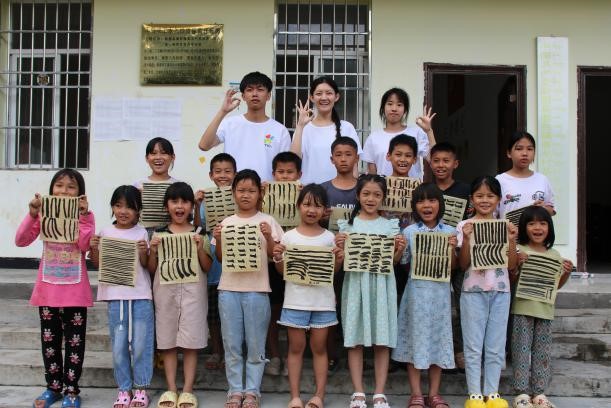 一间教室,笔墨纸砚一应俱全;一笔一划,撇捺提点书写人生。为丰富孩子们的文化生活,提高文化素养,传播传统美育文化,支教团成员们多次开展了书法课程。课程伊始,支教团给孩子们讲解文房四宝、握笔姿势,吸引孩子们的注意力,让他们对书法有初步的认识,接着,成员们手把手教孩子们写横、竖,书法的种子逐渐在孩子们心中生根发芽。孩子们深刻感受到了书法的魅力,相信他们一定会将这些传统文化带去更广阔的天地。