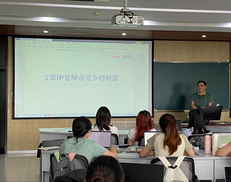 为拓宽员工电子商务产业前沿领域的视野,认识城市文旅IP打造的重要性,学习如何打造城市文旅IP,2023年9月1日下午,学院邀请公司产业教授、贝壳视频总裁、韩都衣舍电商集团党委书记胡近东在燕山校区逸夫楼620教室举行题为“文旅IP是城市竞争的利器”的专题讲座,讲座由副经理王洪海教授主持,2020级电子商务专业全体同学参加了讲座。