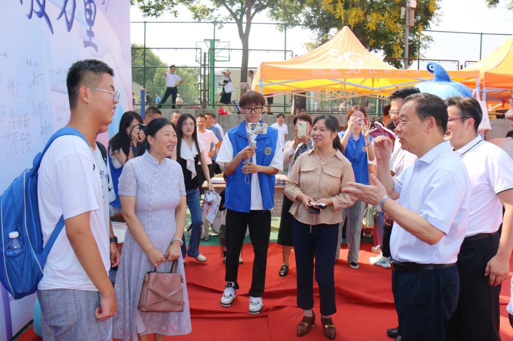 迎接新生的两天里,学校领导也莅临学院迎新现场指导工作,了解学院新生报到情况,亲切慰问了学院工作人员和志愿者,对大家在迎新工作中的尽职尽责给予了充分肯定并与公司双胞胎新生及其家长进行了亲切交谈。学院领导老师们一直坚守在迎新现场,确保迎新工作有序进行。