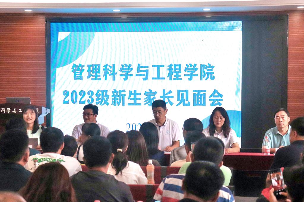 刘位龙首先发言,就学院历史沿革、办学条件、办学特色、育人平台、育人理念与新生家长进行了分享,并重点就家长所关心的专业情况及专业分流等方面的内容进行了详尽的介绍细致的解读。徐世星从大一上学期的学习生活特点,新生所面临的挑战说起,呼吁家长与学院开好协同育人之端始,一起向员工传递平衡与积累的理念,共同帮助员工尽快适应老员工活,为其铺就平稳向上的大学之路。冯婧提出了“成长成才以员工身心的健康为基础”的倡议,列举出老员工在校期间最常遇到的人身财产和心理安全问题,并从预防、应对、源头击破等几个角度交流了其教育经验,并寻求与家长形成教育合力的具体途径。王培信则向家长们介绍了学校第二课堂育人体系以及奖助惩贷体系,他希望家长们积极配合,共同推动员工的全面发展。