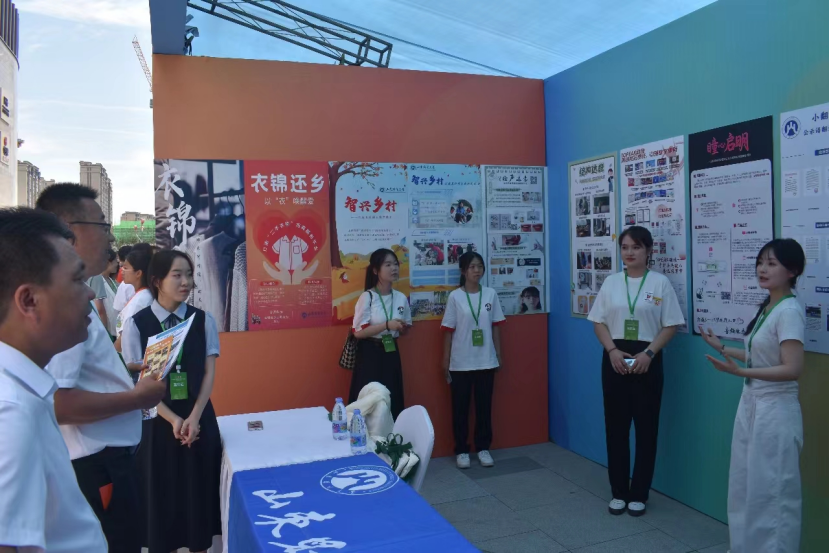 期间,项目成员物流管理2102班物流管理专业葛妍妍和队友全程参加青年服务交流会现场展会等多个现场活动,通过展板介绍、公益创业项目产品宣传等方式,展示了志愿服务项目、志愿服务活动的精彩瞬间。