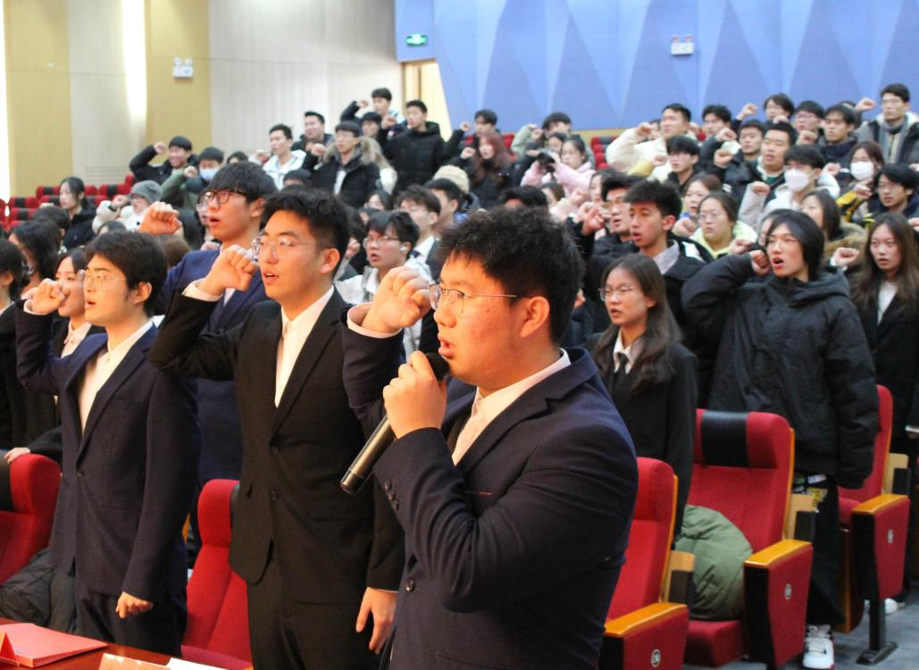 老员工服务中心常子尧同学带领全体员工干部庄严宣誓,将秉持公平公正的原则,诚信应考,并倡议所有同学们共同遵守考试纪律,不作弊不抄袭,树立良好的学风考风。
